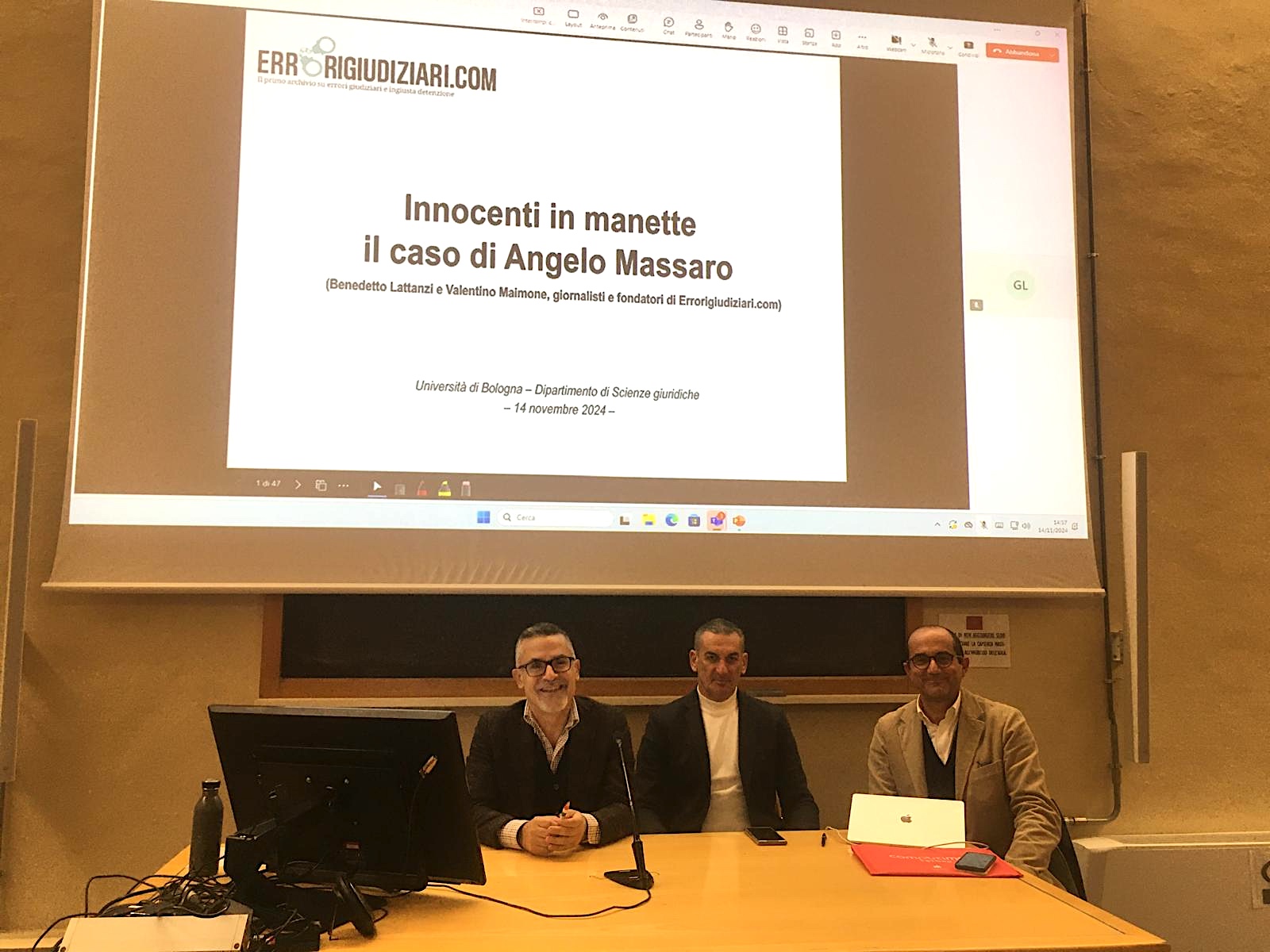 Parlare di errori giudiziari a Bologna. Salire in cattedra nell’università più antica d’Italia e d’Europa: cos’altro avremmo potuto volere di più? La giornata di ieri (14 novembre 2024) ce la ricorderemo a lungo: incontrare gli studenti e i ricercatori del Dipartimento di Scienze Giuridiche dell’Università di Bologna, raccontargli la nostra esperienza come giornalisti professionisti impegnati nella raccolta e nell’analisi dei casi di innocenti in manette, guidarli nella conoscenza di un’emergenza trascurata, misconosciuta e sottovalutata come quella degli errori giudiziari in Italia, è stato davvero il massimo.
